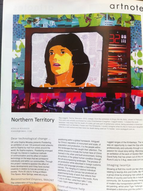 In Art Monthly Australia this month, there’s a little write up about my exhibition about Azaria Chamberlain and the horrors that Lindy had to endure.