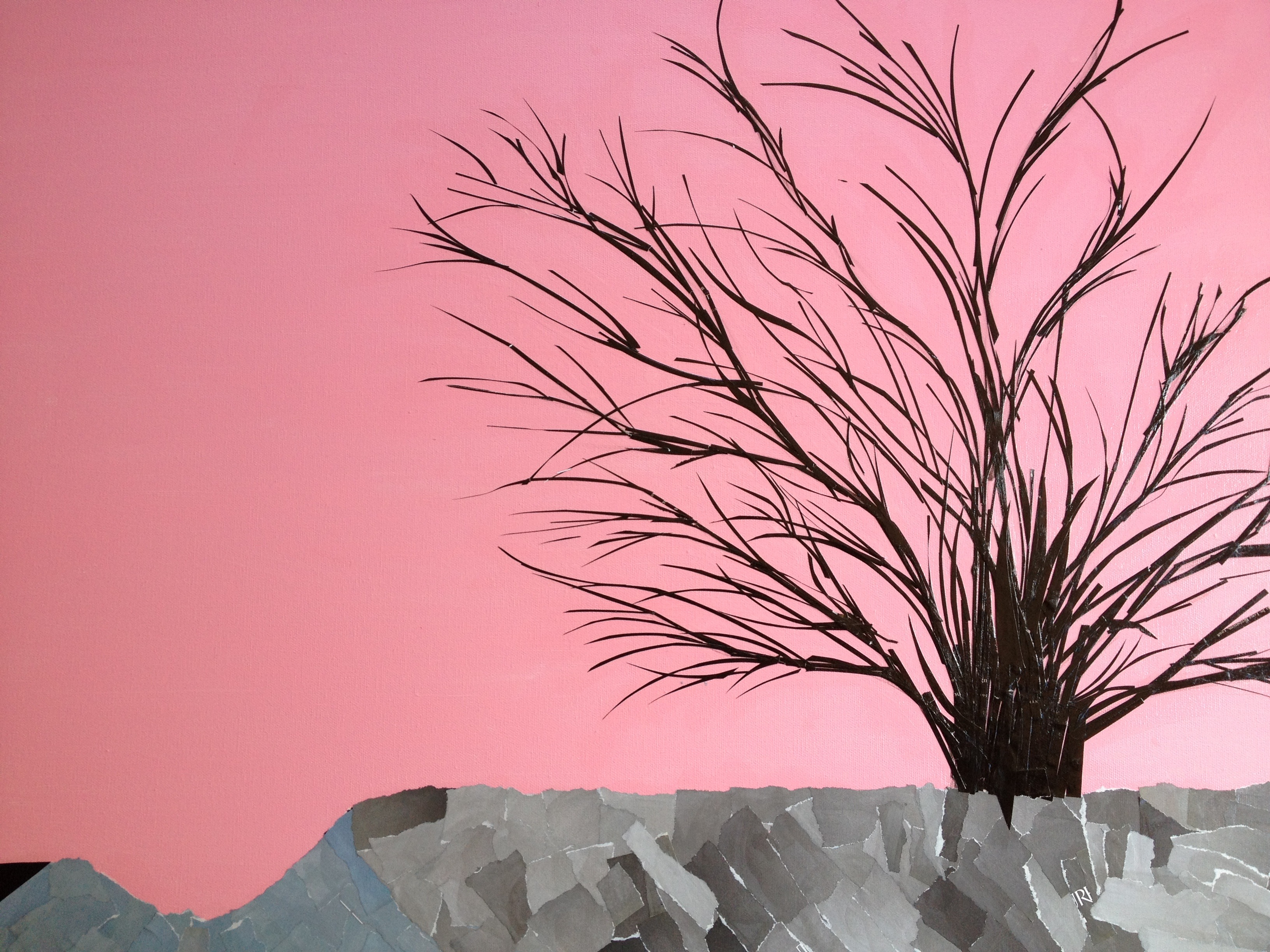 I’ve just completed, Rape Fields, above. Part of the series titled “Dark side of the Road.” And here’s a work in progress, as yet untitled, it’s a Hawthorn bush on Bombay Road.