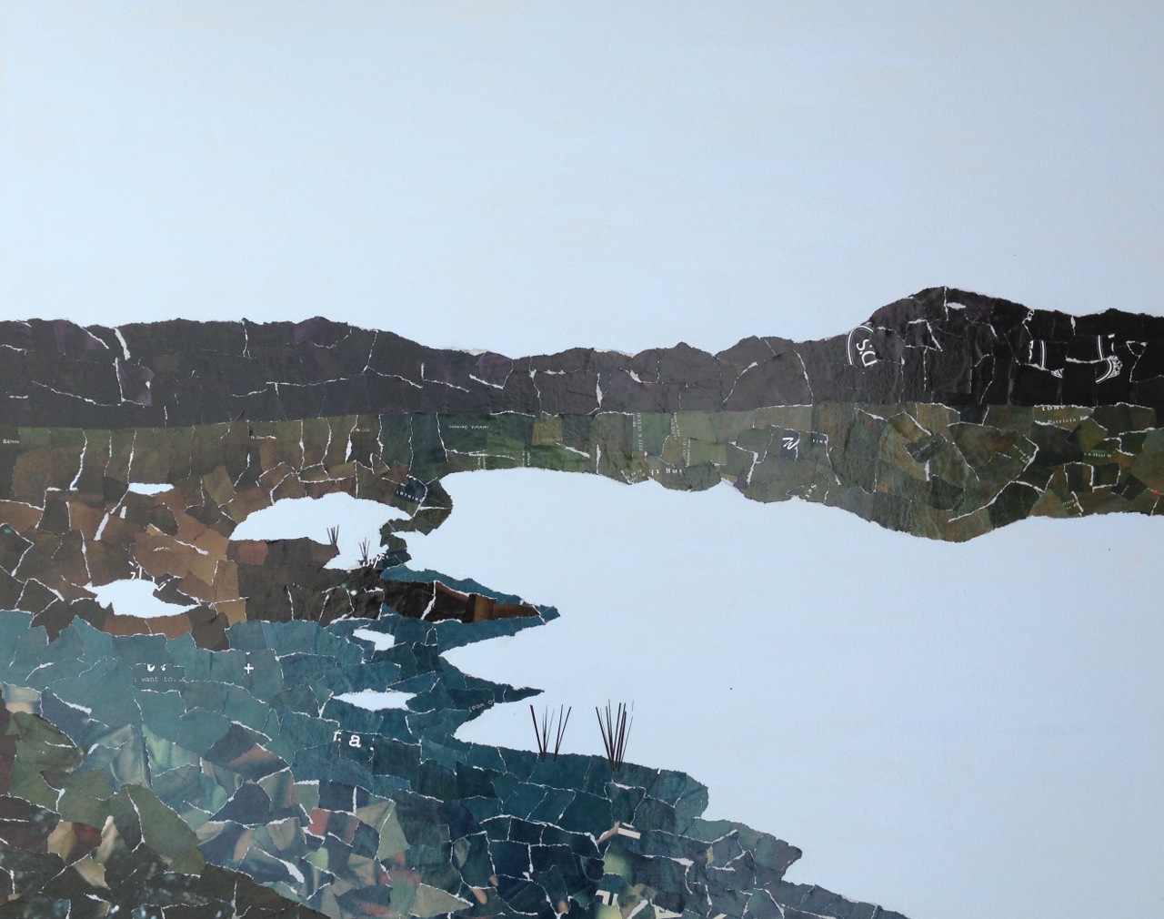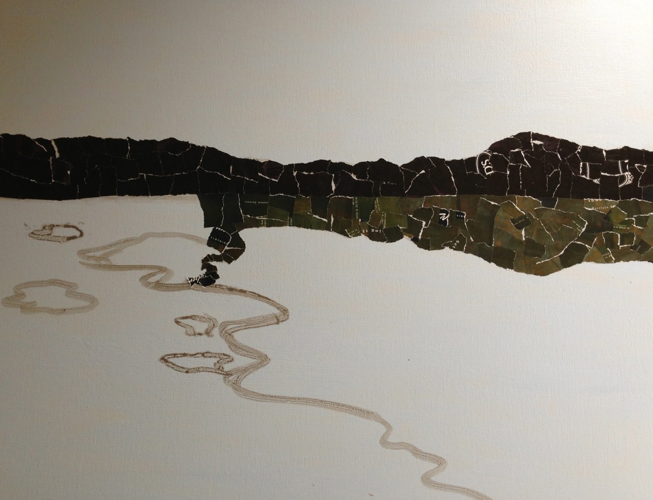 Here’s the last of my series of Dark Side of the Road. This landscape is quite near my house, it’s a dam by the road on the way into town. I quite like the dark earth and bright sky. But the more I look at it, the more I feel something is missing – or is it?