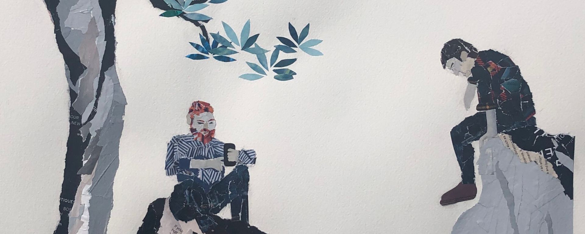 The first work lead to the second work. It’s my husband and I, socially distanced, isolating at home. He’s obsessively reading news updates and I am taking it all in. Thinking about a world that feels like the world we knew, now totally off-kilter.