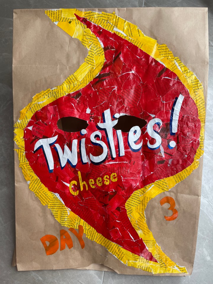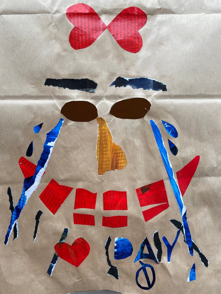 I don’t know why I put the brown paper bag over my head. But it reminds me of the mask I wore every time I went outside last year. Reminds me of the barriers we built between us and it. The threat of COVID-19. In the end, the mask became a kind of comforter. Even at home, I would find myself pulling it up over my mouth and nose to quell feelings of anxiety.