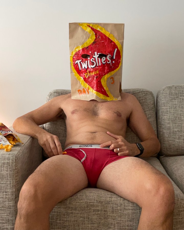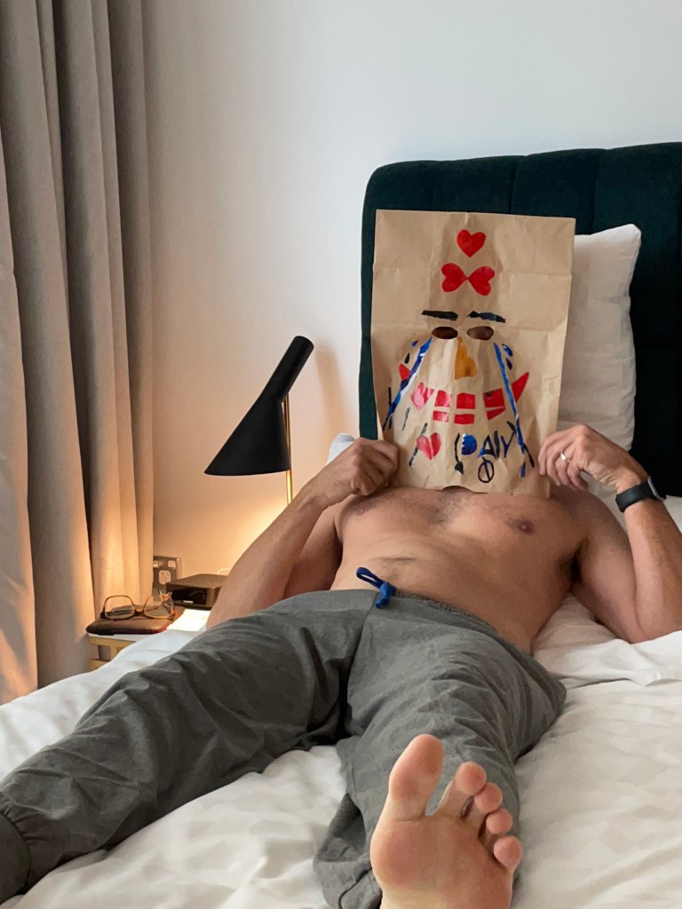 I have a lot to be thankful for. My room has a window that opens to fresh air. Side views to Darling Harbour and Sydney Tower. There’s a galley kitchen, washing machine. A knock at my door. Opening it, no one’s there. Corridors empty. Just a brown paper bag of food at my feet. This knock-and-run happens twice a day, every day until I get out.