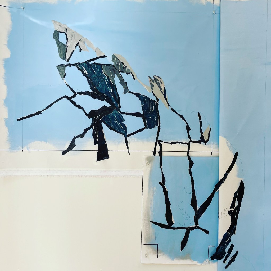 I put it to one side and work on something else. I distract myself. I’ve been trying to create works without drafting anything first. I start laying paper down to see if I can create the right shapes and forms.