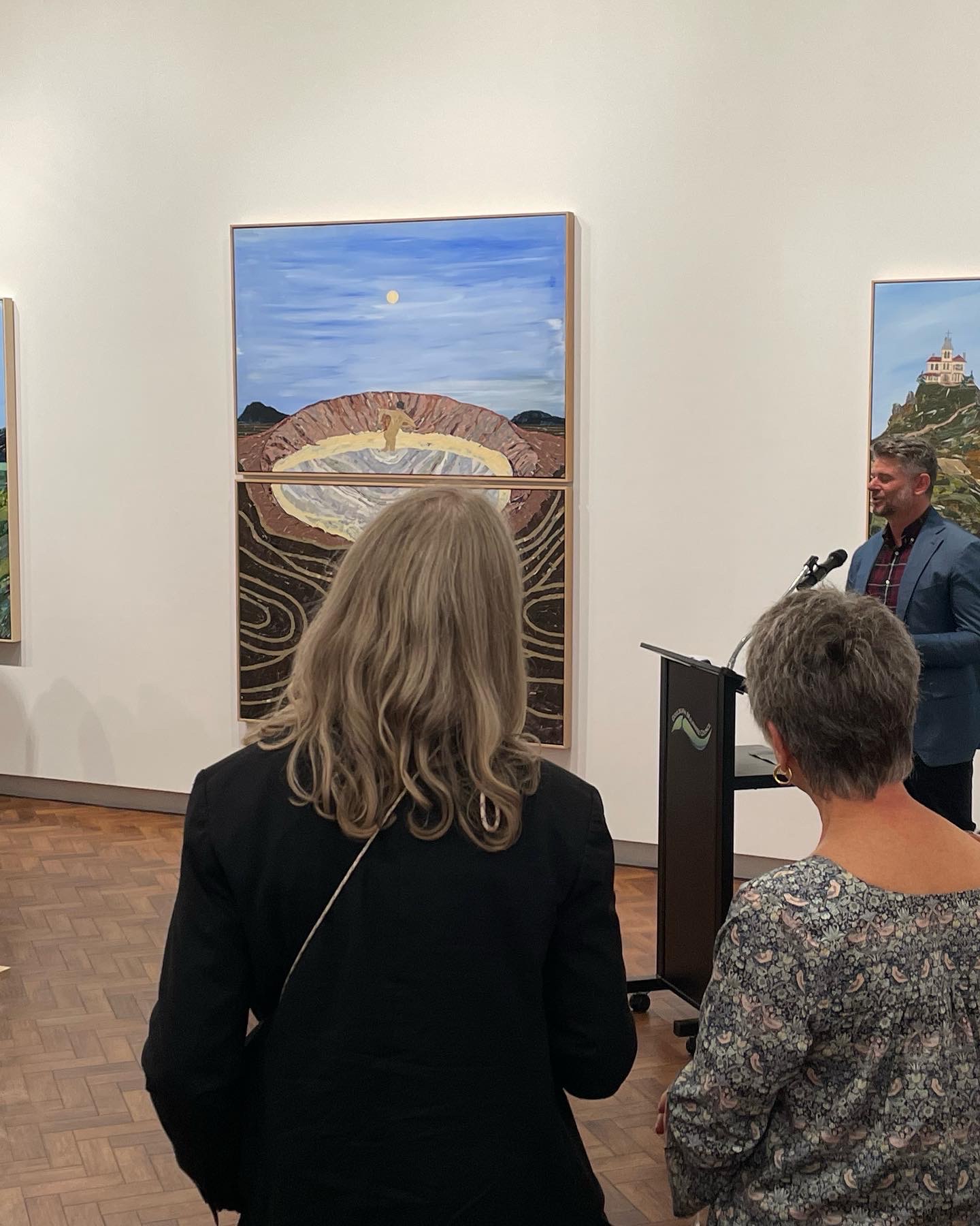 In his opening address Nick spoke of the naked figure in the landscape exploring vulnerability and compared this vulnerability that’s evoked in the works of other artists like Arthur Boyd.