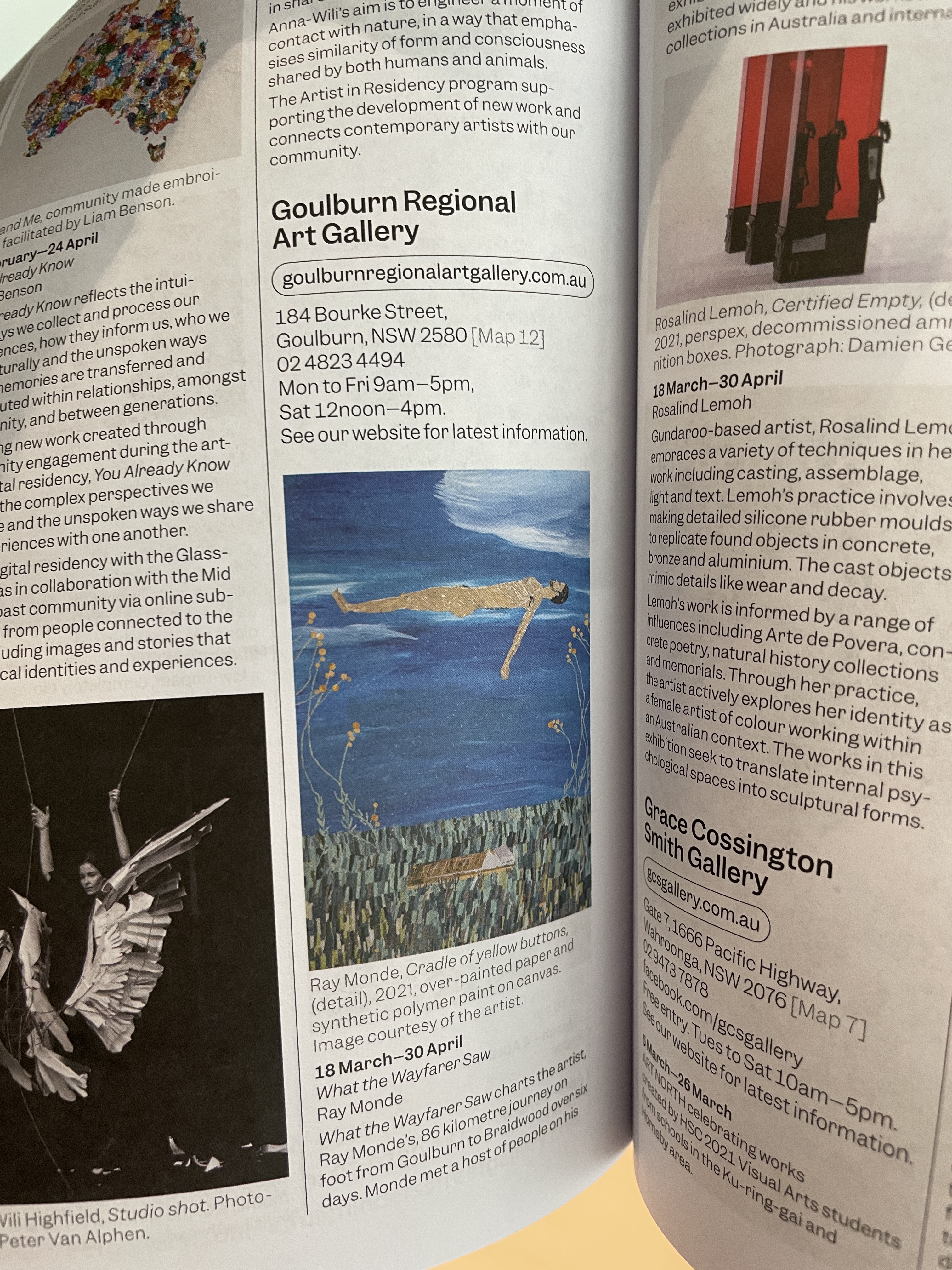 The exhibition, What the Wayfarer Saw, at Goulburn Regional Art Gallery charts an 86 kilometre odyssey on foot from Goulburn to Braidwood over six days, sleeping by the roadside, in pubs and country homes along the way. The measured and slow pace of walking allowed the artist to deeply connect with people and place.