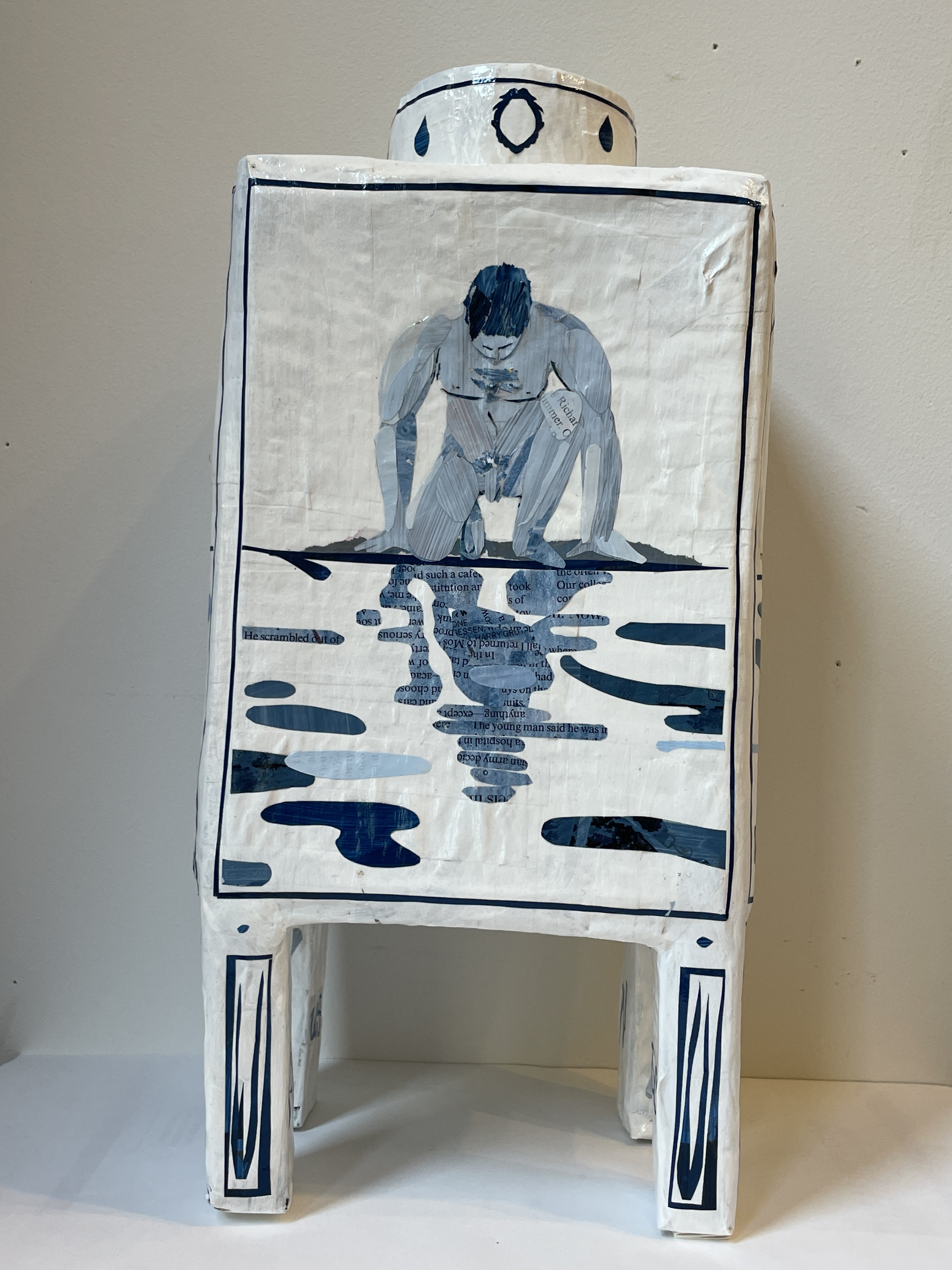 Made entirely of paper and decorated in collage, these subversive vessels cast a jagged eye onto queer culture. In his work Queercissus (above) Ray Monde examines the superficial body obsession that dominates gay circuit parties.