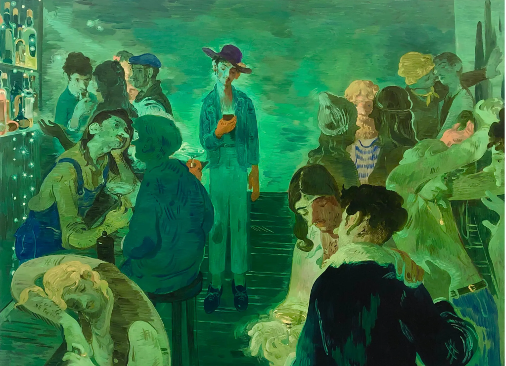 The queerness in my painting is in conversation with images of power and subjugation through art history. To me, the characters in the paintings have a relationship to power. They ignore it, maybe they’re terrified of it, they challenge it, or they embody it. At the same time, it is important to me that my paintings are images of self-reflection, self-love in some way.