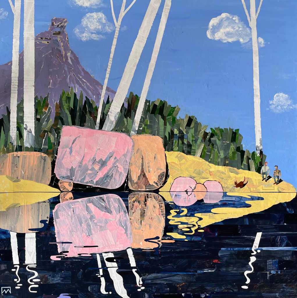 I see two figures compounding the scale of place. The conversations between the figures point both to a connection to the landscape and with each other. A quiet focus on the unspoken bonds of men. And between me and the artist I never met.